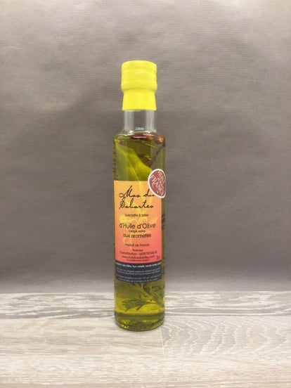 Préparation à base d'huile d'olive vierge extra et d'aromates du jardin : thym, romarin, sarriette, laurier et petits piments.